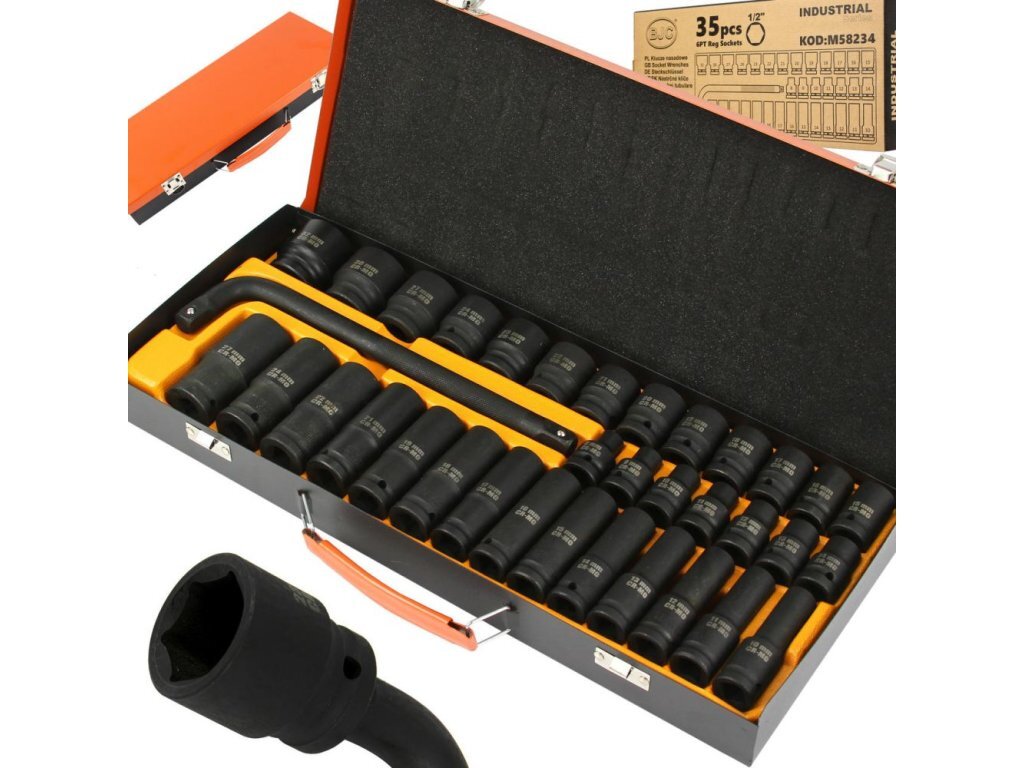 Hlavice nástrčné rázové šestihranné 1/2", 8-32mm, sada 35ks BJC