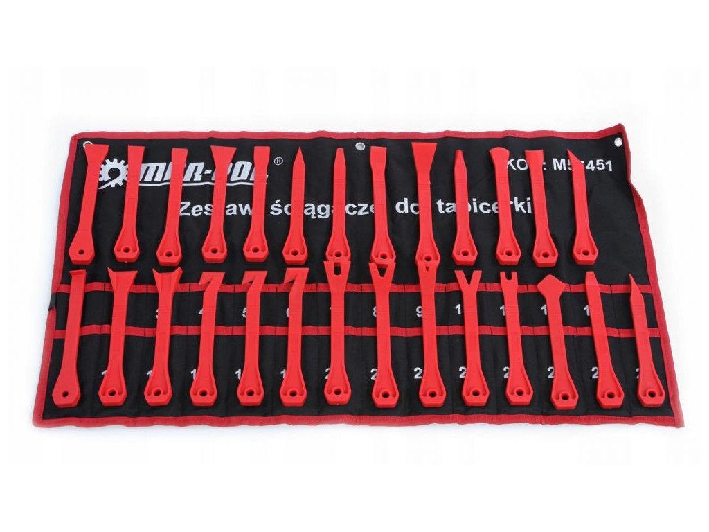Sada na demontáž čalounění 27ks MAR-POLSpecializované stahováky pro demontáž obložení, lamel, klipů a čalounění v automobilech a technických zařízeních. Souprava najde uplatnění v karosárnách a u mechaniků. Vyrobeny z nylonu, který zaručuje bezpečné použití pro plastové separované prvky. Mají...