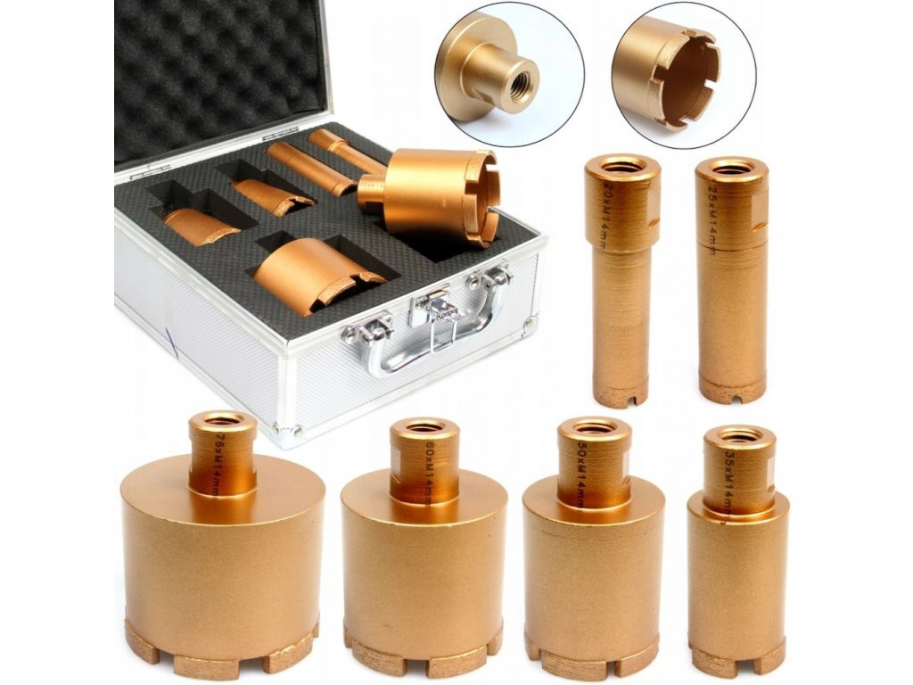 Diamantové vykružovací korunky, sada 6ks, 20-75mm, závit M14 RAPID