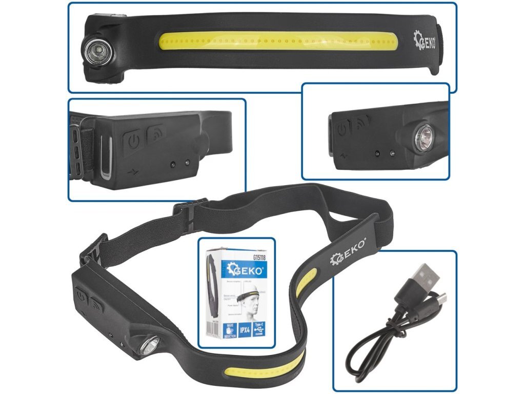 Čelovka s IR pohybovým senzorem, 350lm, COB LED/XPE LED, USB nabíjení KELTIN