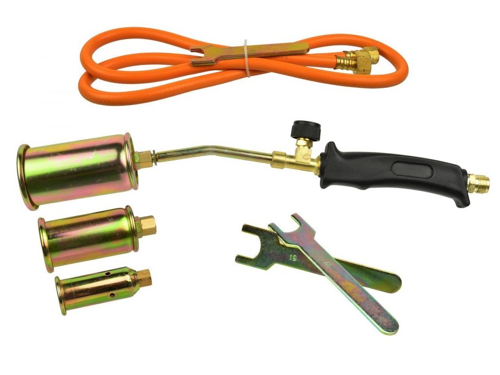 Plynový hořák, 3 koncovky 25,35,50mm, hadice 1,5m GEKO