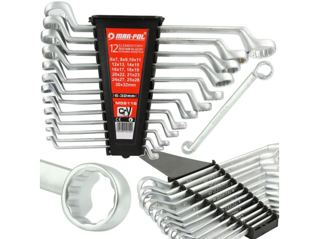 Klíče očkové zahnuté, sada 12ks, 6-32mm MAR-POL