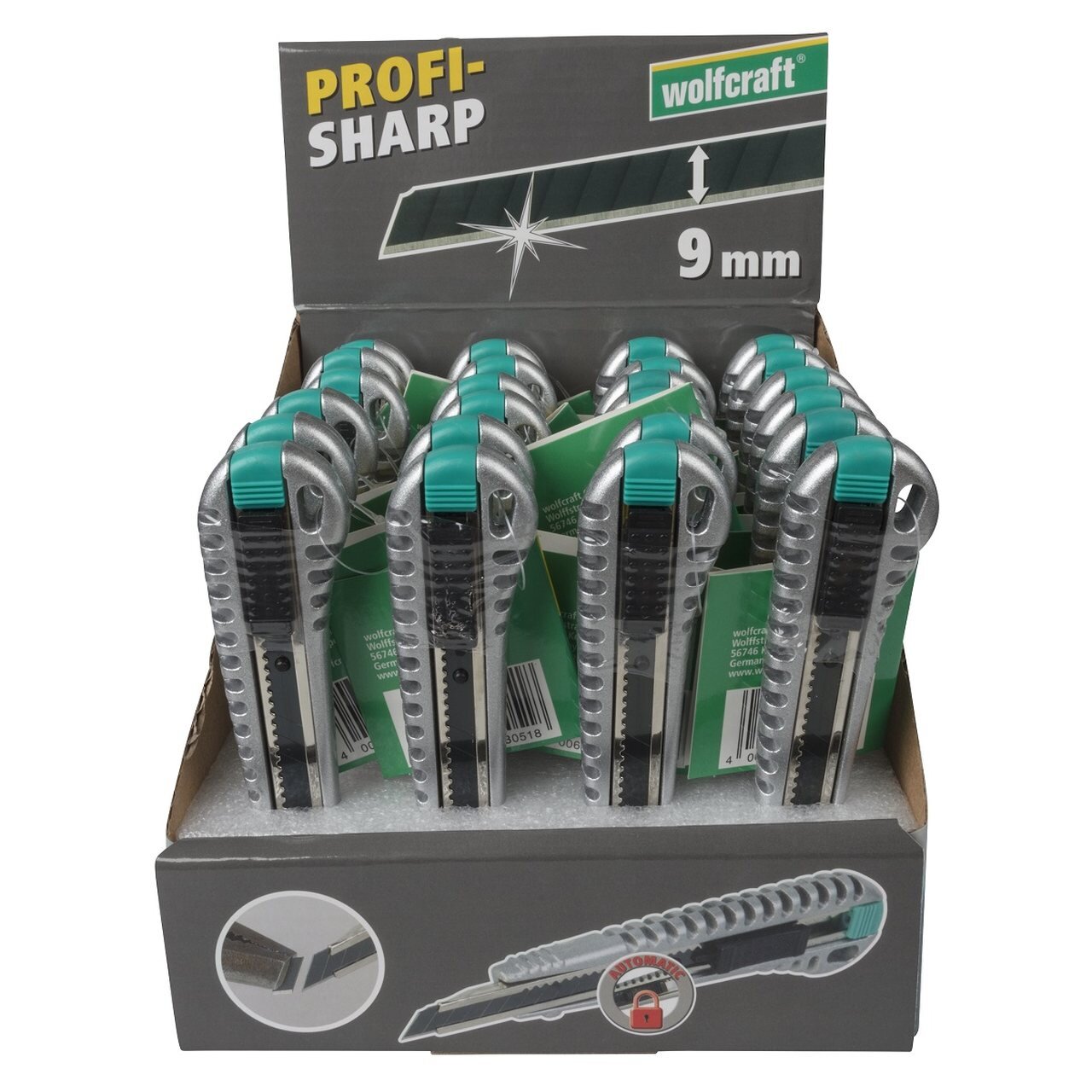 Nóż z ostrzem 9 mm pro-sharp, metalowy, Wolfcraft