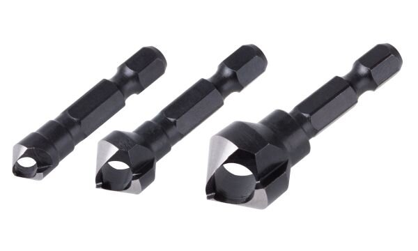 Zestaw pogłębiaczy 8, 12, 16 mm Wolfcraft - z wyrzutnikiem, trzpień 6-kątny