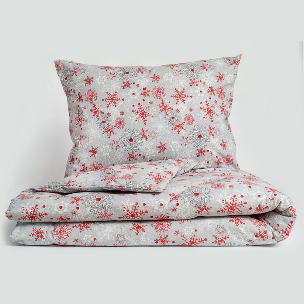 Vánoční flanelové povlečení 220x200, 70x90cm VLOČKY červenošedé