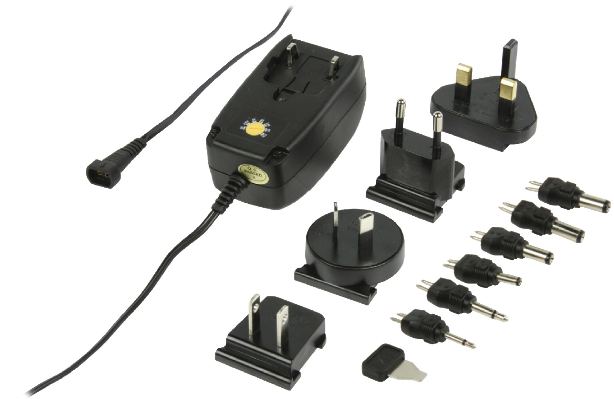 Univerzální AC napájecí adaptér 3/4.5/5/6/7.5/9/12V DC 1.0A pro mezinárodní použití (UK / USA / EU / Asie)Kompaktní a velmi účinný univerzální 1000 mA plug-in napájecí adaptér s výstupem 3-12 V a LED indikací. 6 výměnných napájecích konektorů umožňuje použití s mnoha různými přístroji.Délka kabelu: 1.80 mRozměry adaptéru: 69 x 74 x 42 mmVýměnné konektory:2.5 x 2.1 mm3.5 x 2.1 mm5.0 x 2.1 mm5.5 x 2.5 mm3.5 x 1.35 mm5.5 x 1.5 mm