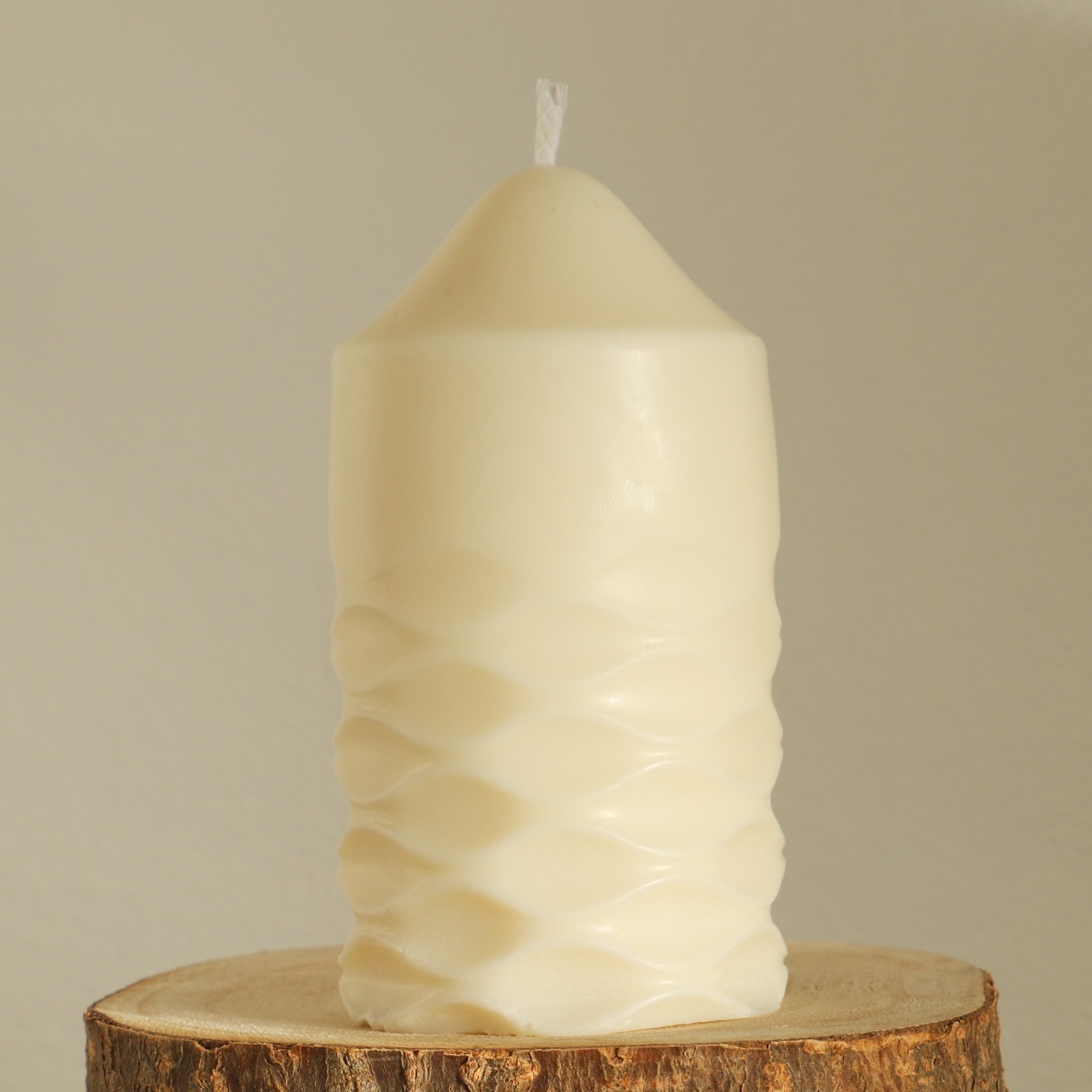 Ručně odlévaná sójová svíčka. Je zdobená decentními vlnami.