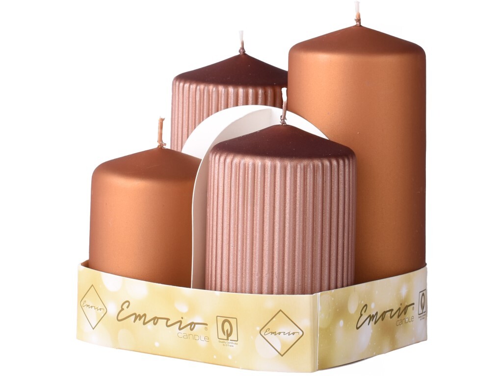 Emocio Sada 4ks Válec hladký + rýhovaný 65mm, Metal mat hnědý mix, svíčky