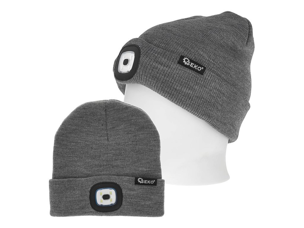 Čepice s LED světlem, USB nabíjení, šedá - GEKO