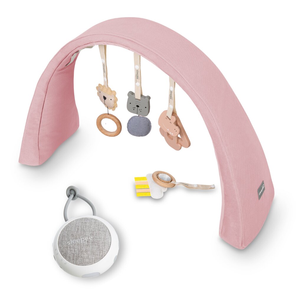 Nastavitelná hrazdička s hračkami a bílým šumem 2v1 Sleepee Pink