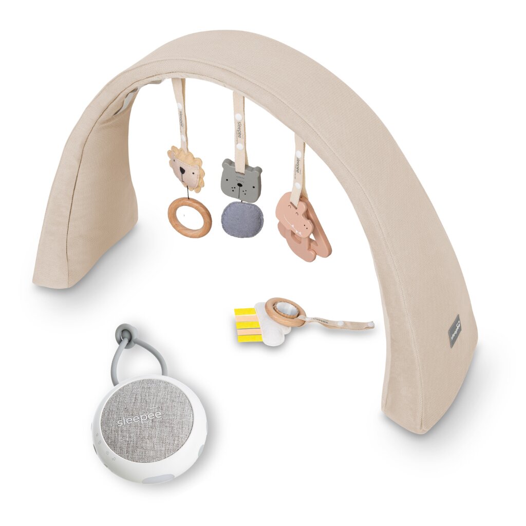 Nastavitelná hrazdička s hračkami a bílým šumem 2v1 Sleepee Sand