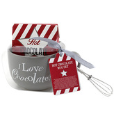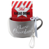 Dárková sada, Čokoláda 19 g, šedý keramický hrnek s nápisem 500 ml, metlička