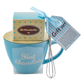 Dárková sada, Čokoláda 19 g, modrý keramický hrnek s nápisem 300 ml, metlička