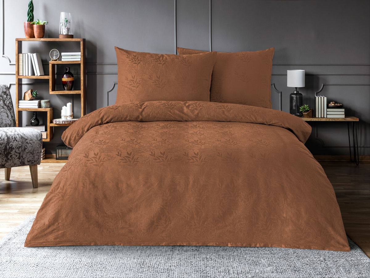 Luxusní žakárové povlečení 220x200, 70x90cm listy hnědé