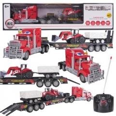 Ciężarówka z traktorem i przyczepką