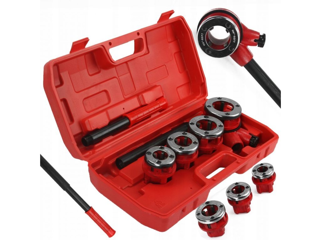 Závitníky R trubkové, BSPT, 4-dílná sadaZávitníky v palcové soustavě určené na řezání závitů na potrubí. Sada obsahuje 4 litinové závitníky s 4 noži z nástrojové oceli, račnovou hlavu a dvojdílnou rukojeť. Vše uloženo v plastovém kufříku.Vnější průměr račny je cca 9cmParametry1/2“3/4“1“1 1/4“ prečítať celé
