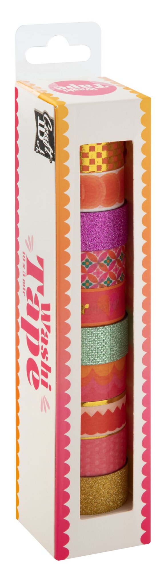 Dekorační lepicí páska - Washi pásky, 1,5cm x 3m, 10ks, oranžové