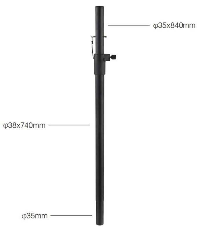 Profesionální reproduktorový stojan pro zasunutí do subwooferu s pouzdrem pro 35mm tyč. Nastavitelná délka: 74 cm - 134 cm. Maximální nosnost 50kg. prečítať celé