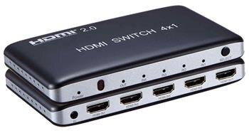 PremiumCord 4K@60hz HDMI switch 4:1 plastový s dálkovým ovladačem