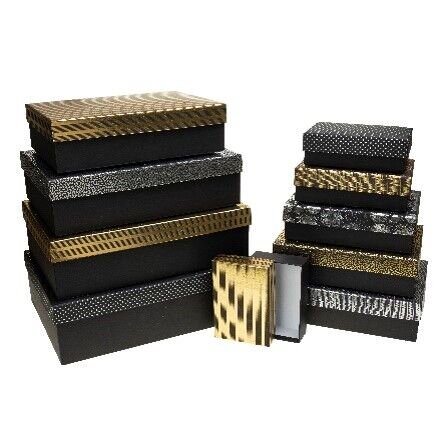 Sada dárkových krabic.Rozměry: 14,5 x 10 x 5 cm; 17 x 12 x 5,5 cm; 9 x 13,5 x 6 cm; 22 x 16 x 6,5 cm; 24,5 x 17,5 x 7 cm; 27,5 x 19,5 x 7,5 cm; 29 x 21 x 8 cm; 33 x 23.5 x 9 cm; 35 x 25 x 10 cm; 37 x 27 x 13 cm prečítať celé