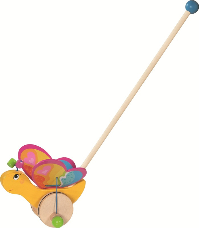 Drewniana zabawka na kiju do pchania motyl, posiada ruchome skrzydła oraz kolorowe czułki.Wymiary: 18 x 15 x 51 cm prečítať celé
