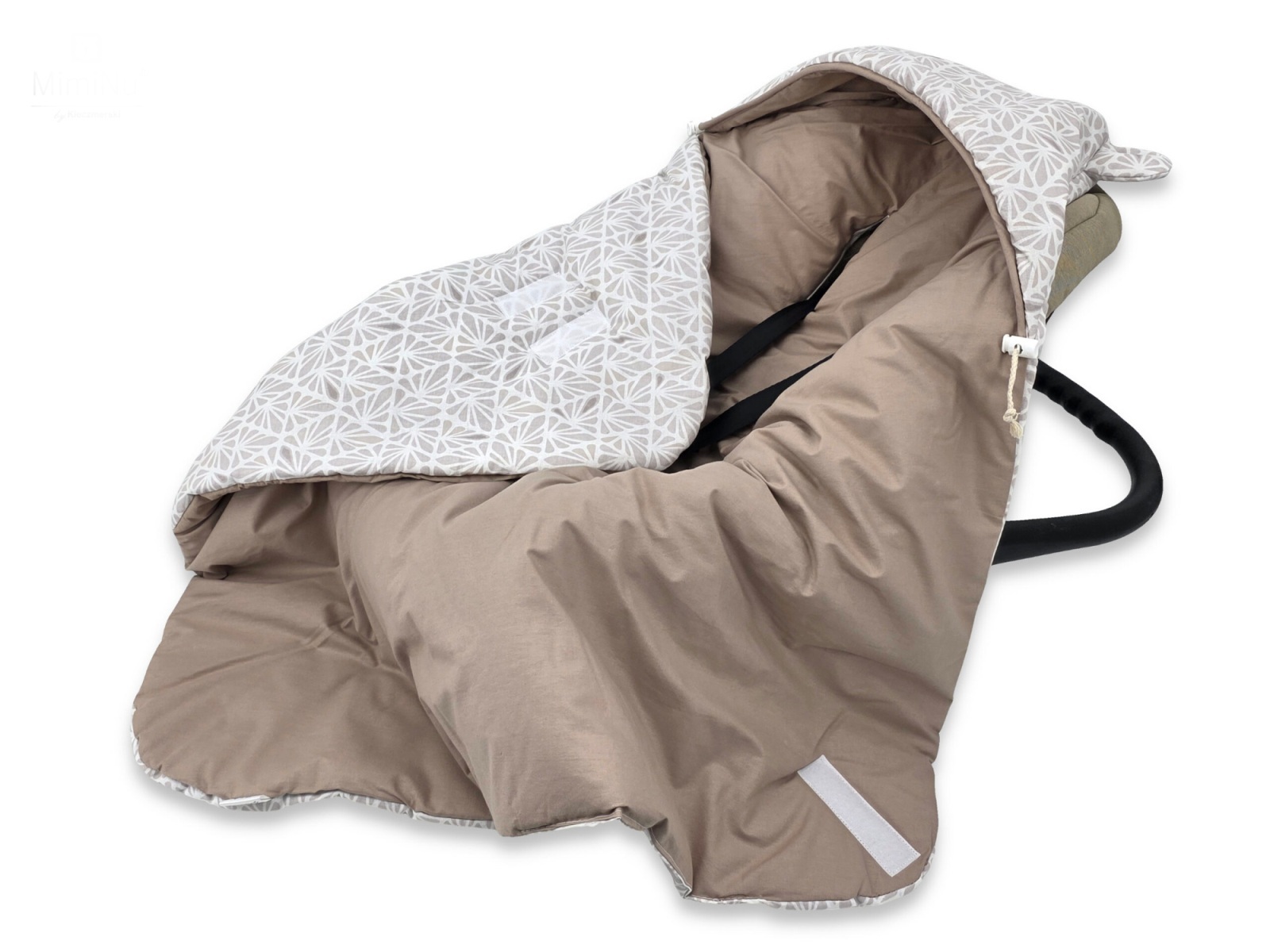 Oteplená zavinovací deka s kapucí, bavlna, 90 x 90 cm - béžová se vzorem; béžová; 100 % bavlna, duté vlákno