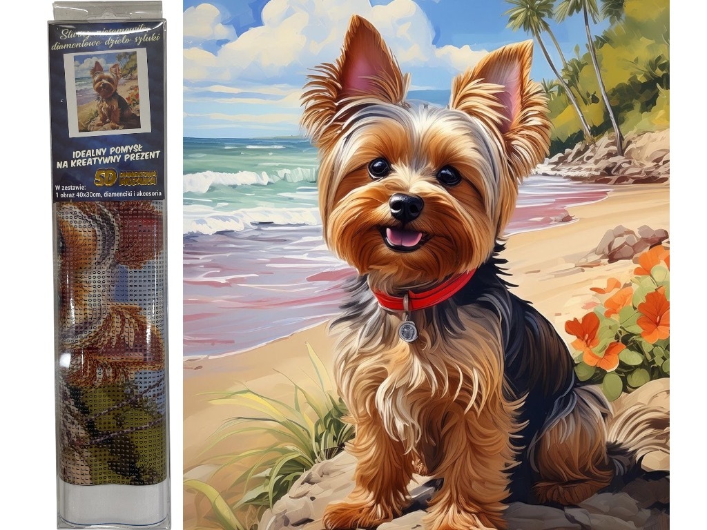 Diamantový obrázek Pes Jorkšír na pláži 30 x 40 cm