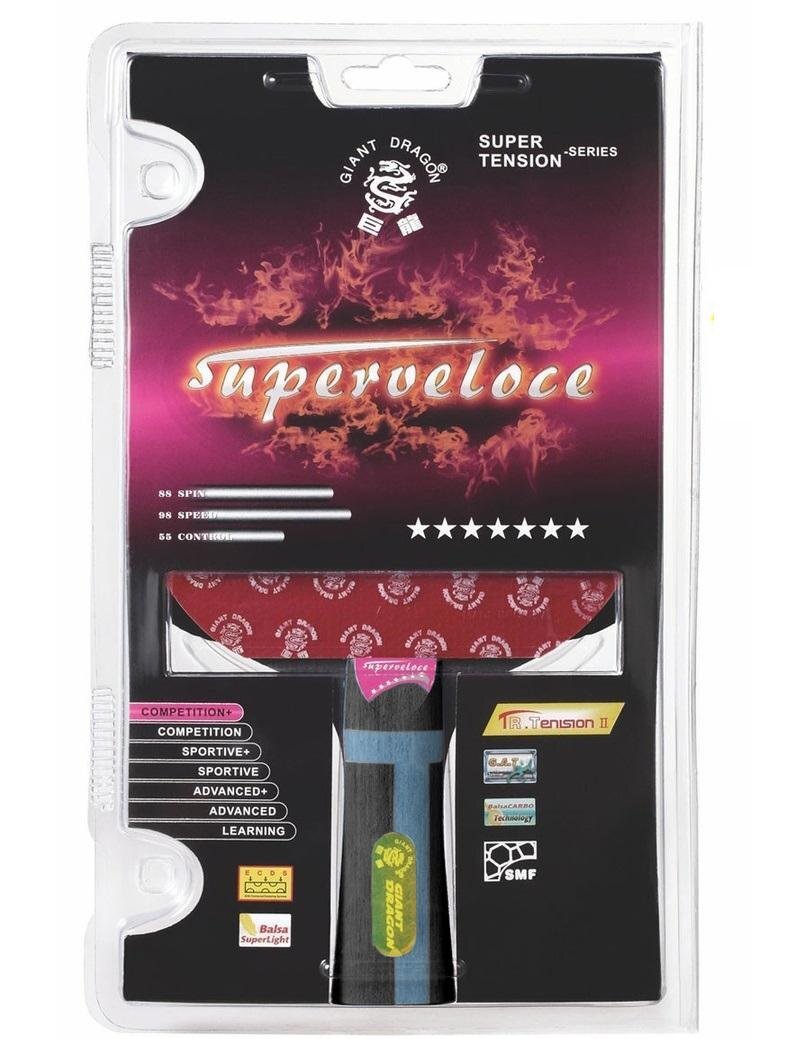 Pálka na stolní tenis SUPERVELOCE 7* Je pálka od značkového výrobce GIANT DRAGON je vyrobena z kvalitních materiálů za použití nejmodernějších technologií. Pálka vyniká pohodlným překližkovým konkávním úchytem a značkovým potahem scháleným ITTF - SUPERVELOCE. Je určena pro pokročilé hráče, kteří...
