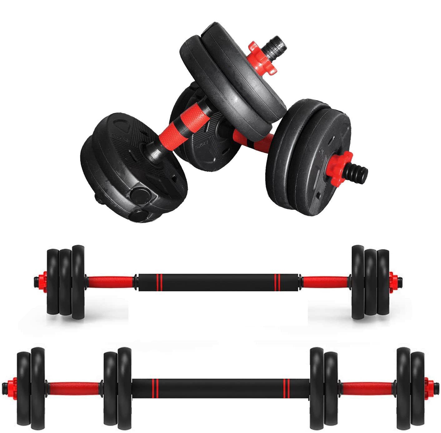 Nakládací činka SEDCO CEMENT - sada 2x5 kg / 1x10 kgUniverzální nakládací sada zahrnuje dvě jednoruční a jednu obouruční činku. Díky variabilnímu systému ji můžete sestavit několika způsoby – buď jako klasické jednoručky pomocí krátkých os, nebo s využitím spojovací tyče vytvořit delší obouruční...