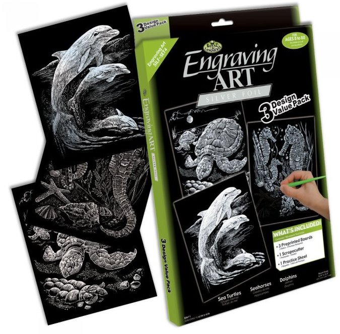 Výhodná sada tří třpytivých obrázků. Škrabací obrázky probouzí kreativitu a nadšení nejen pro malé výtvarníky. Papír je potažený černou vrstvou skrývající podklad se stříbrným efektem. Přiloženým škrabacím perem vyškrábejte linky předtištěného obrázku. Do černých míst bez potisku je možné...