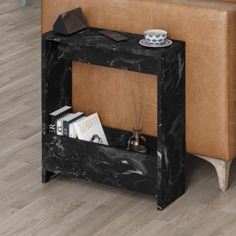 Dekor: Mramor černýDesign: ModerníMateriál desky: DřevotřískaMateriál nohou: DřevotřískaNosnost: 12 kgPovrchová úprava: MatSada stolků: NeTloušťka desky stolu: 1,8 cmPůdorys: AtypickéTyp: S úložným prostoremHloubka: 20 cmŠířka: 55 cmVýška: 60 cmHmotnost: 6.60 kg prečítať celé