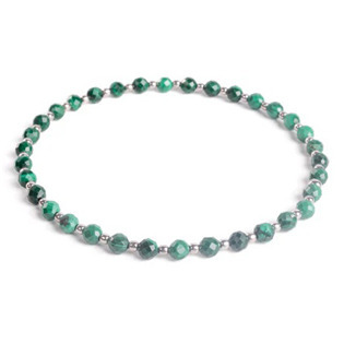 Pružný náramek s přírodními broušenými kameny MALACHIT a stříbrnými kuličkami z jakostního stříbra 925/1000povrchová úpravarhodiummateriálstříbro (Ag 925/1000)barva kamenezelenádruh kamenemalachithmotnost3,90 gdélka náramku17 cmrozměr kamene3 mmrozměr kuličky2 mmVýrobceNUBIS® prečítať celé