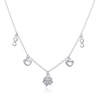 NB-2373 Stříbrný náhrdelník čtyřlístek - srdce