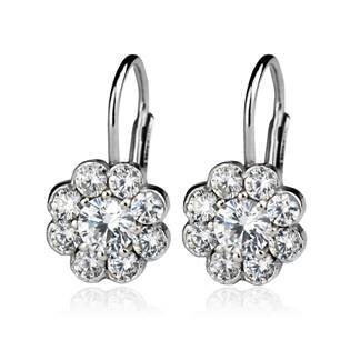 ZB53484-C Stříbrné náušnice kytičky, čiré zirkony - květiny