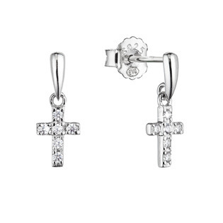 EG9053 Stříbrné náušnice visací křížek se zirkony