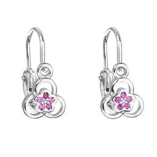 EG2307-F Stříbrné dětské náušnice kytičky, růžové zirkony - květiny