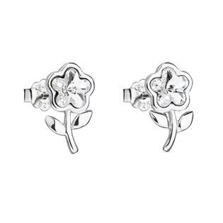 EG2515-CR Stříbrné náušnice pecka s krystaly Swarovski bílá kytička - květiny