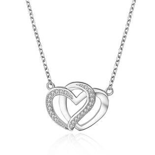 Stříbrný náhrdelník s přívěškem ve tvaru dvou propletených srdíček dekorovaných zirkony čiré barvyNáhrdelník je vyroben ze stříbra jakosti 925/1000 a je povrchově rhodiovánRhodium patří mezi drahé kovy, patřící do skupiny platinových a chrání stříbro před černáním, zvyšuje lesk šperkůpovrchová... prečítať celé