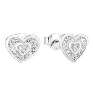 EG2834 Stříbrné náušnice srdíčka se zirkony - srdce