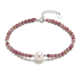AU0016 Minerální náramek přírodní Rodochrosit a perla, stříbro AG925
