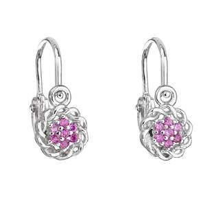 EG2310-F Stříbrné dětské náušnice kytičky, růžové zirkony - květiny