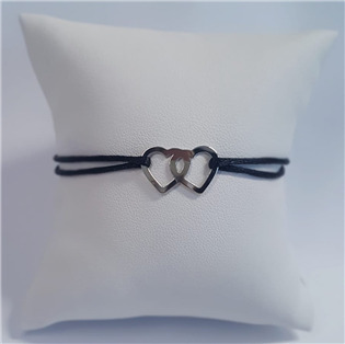 KA1350K-ST Černý textilní náramek dvě srdce, Ag 925