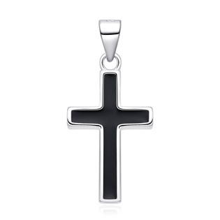 NB-4589 Stříbrný přívěsek kříž s černým smaltem