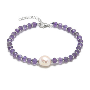 AU0008 Minerální náramek přírodní Ametysty a perla, stříbro AG925