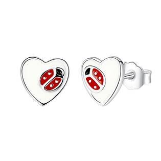 DN-0006 Dětské stříbrné náušnice srdíčka s beruškami - srdce