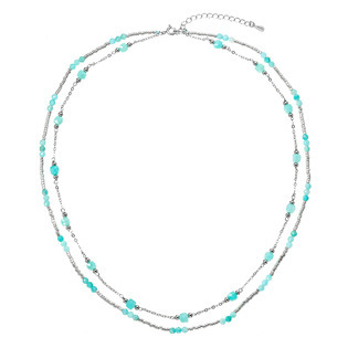 Okouzlující jemný dvouřadý náhrdelník s drobnými přírodními kamínky amazonity působí lehce a elegantně.Kombinace dvou řetízků různých délek (42 a 45 cm) s možností prodloužení o 5 cm vytváří vrstvený efekt, který krásně doplní každý outfit. Stříbro je povrchově upravené rhodiováním, díky čemuž si... prečítať celé