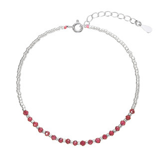 Tento elegantní náramek je vyroben z kvalitního stříbra a zdoben drobnými korálky z pravého granátu v temně červeném odstínu. Skládá se z jemných stříbrných korálků, které tvoří základ náramku, a z části s výraznými granátovými kamínky, jež mu dodávají hloubku a luxusní vzhled.Náramek je zakončen...