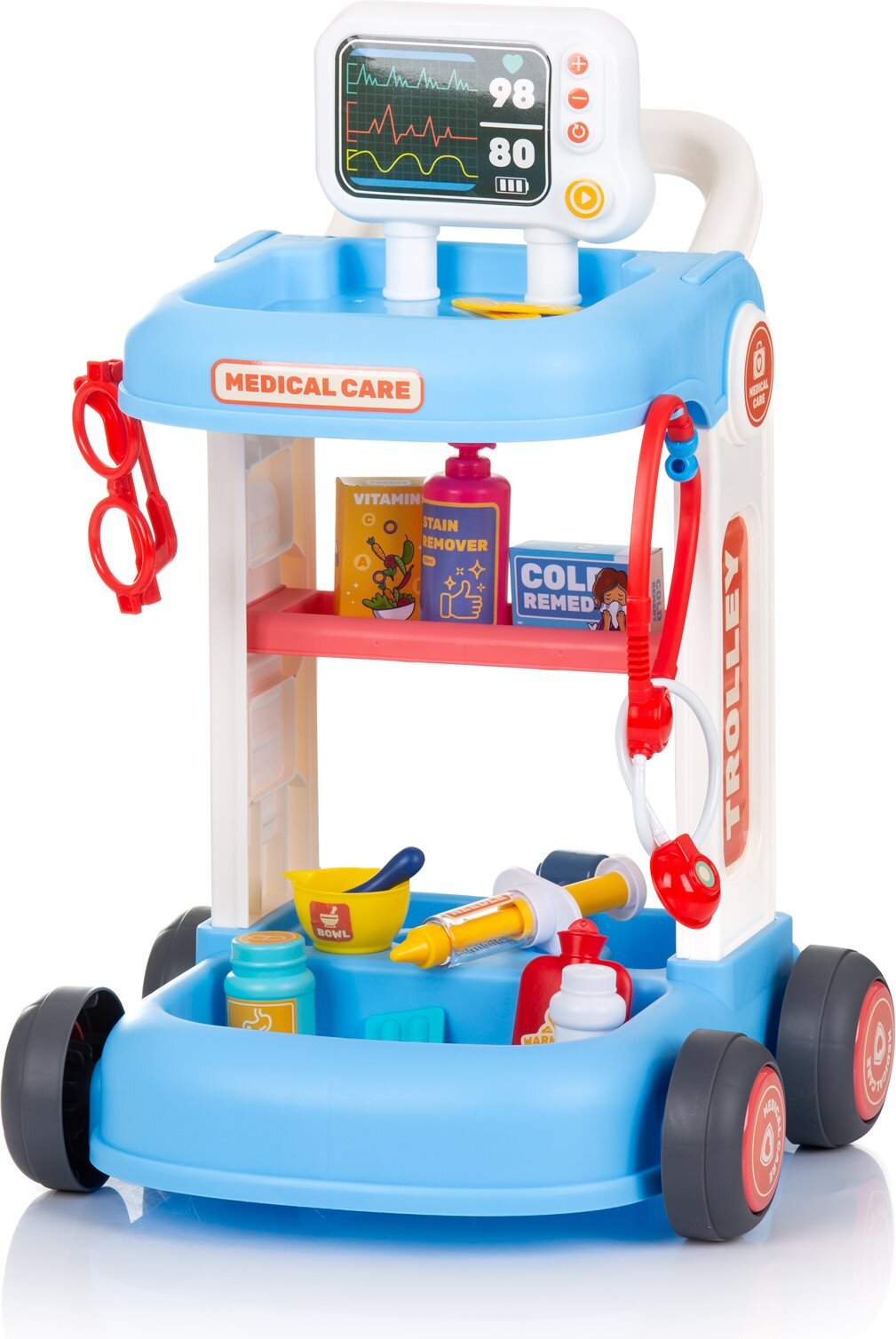 Staň se doktorem! V této sadě najdeš vše, co potřebuješ, aby ses mohl,a proměnit v opravdového lékaře. Vozík na kolečkách s madlem a příslušenstvím. Rozvíjí představivost a kreativitu. Pomáhá dětem zbavit se strachu z návštěvy lékaře prostřednictvím hry a zkoumání. Rozměry výrobku (ve... prečítať celé