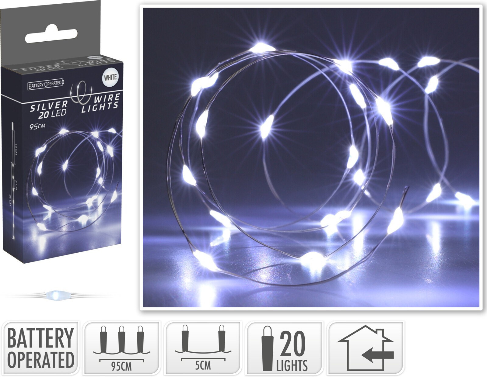 Barva drátu: StříbrnáBarva světla: Studená bíláMateriál: PlastNapájení: 2 x AAPočet diod: 20Vhodní pro: Vnitřní použitíVzdálenost diod: 5 cmDélka: 95 cmHmotnost: 0.03 kg prečítať celé