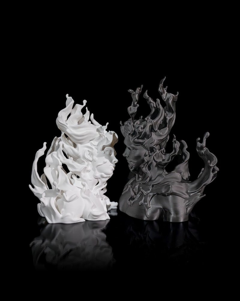 Symbolický design: Socha zobrazuje dvě tváře ve tvaru plamenů a tekoucí vody, které se vzájemně doplňují. Tento kontrast vytváří silný vizuální dojem a přináší do prostoru harmonii a dynamiku.Vysoce kvalitní materiál: Vyrobeno z PLA plastu, který je lehký, odolný a ekologicky šetrný. PLA plast je...